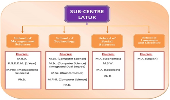 All the courses offered at the schools of Sub-Centre, Latur are autonomous and based on Cumulative Grade Point Average (CGPA), to which the degrees/diplomas are awarded by SRTMU, Nanded. Choice Based Credit System is the focus of the courses. Enthusiastic, young and qualified staffs are the designers and managers of the future of the students under the guidance of a Director at the sub-Centre. The art of education blended with scientific skills and trainings is imparted here with a mission to develop a complete, potential, vibrant-youth, ready to undertake challenges and will not mind to manage the business of others. ‘One Teacher One Skill’ programme of the university is carried out by the teachers enabling the students to enhance their potentiality too.